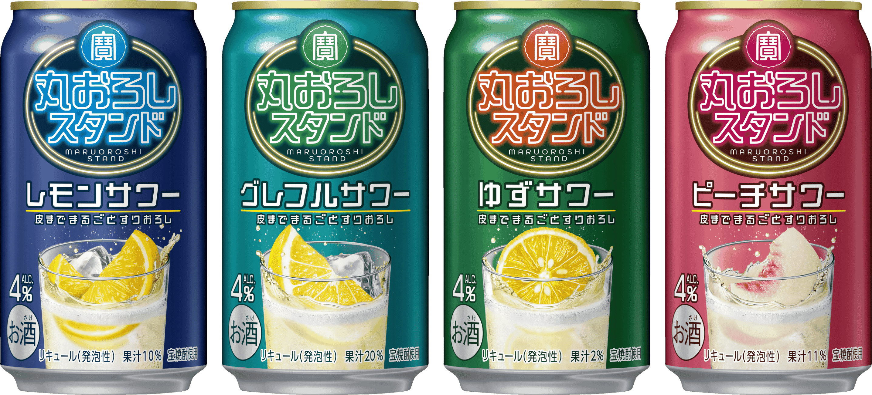 寶「丸おろしスタンド」通年販売フレーバー〈レモンサワー〉〈グレフルサワー〉〈ゆずサワー〉〈ピーチサワー〉