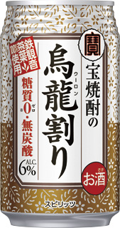 すっきりまろやかな味わいの宝焼酎に鉄観音茶葉100%使用の烏龍茶をブレンドした「宝焼酎の烏龍割り」です。“糖質ゼロ”で甘くない、“無炭酸”によるやさしい飲み口が特長です。