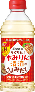 “らくちん!本みりんと清酒のうまみだし”は、当社の「本みりん」「料理清酒」「だし調味料」をブレンドした商品です。
