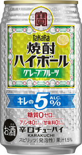 強炭酸でキレ味爽快な辛口の味わいを、グレープフルーツフレーバーで仕上げたアルコール分5%のタカラ「焼酎ハイボール」です。健康志向にうれしい“糖質ゼロ”“プリン体ゼロ” “甘味料ゼロ”も実現しています。